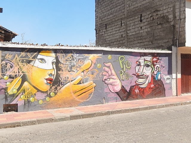 He then remembered to speak in Spanish !! The next thing you know, one of "those" 3 men pointed to the floor where Mike found his wallet. Thank goodness!! These are the most dangerous times when you are in crowds of any sort, busses, trains, or streets. He finally made it to a seat with wallet in tact! And, we were then on our way for a 20 minute bus ride to Cotacachi.