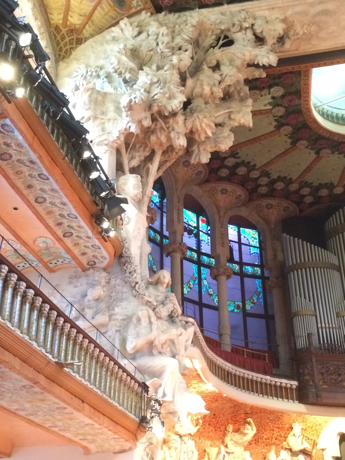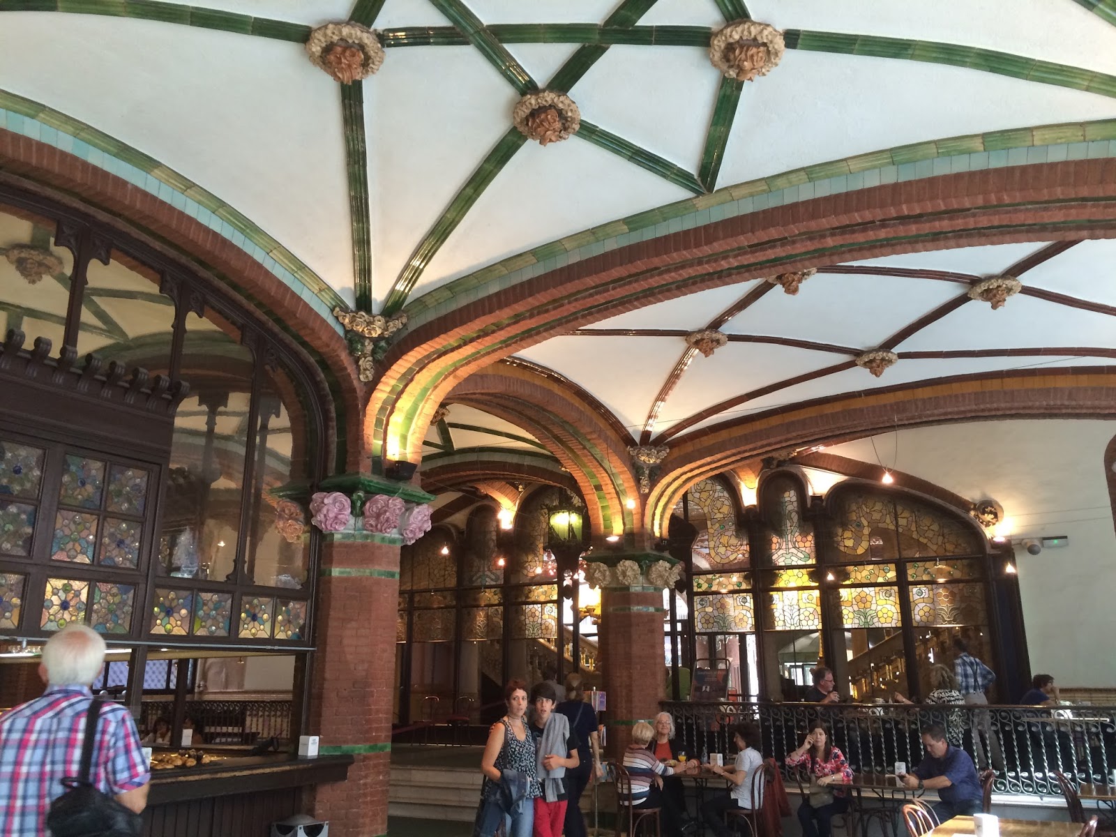 After lunch, we made our way to the Palau de Musica to buy tour tickets. The only tickets they had left for that afternoon were for a tour in Spanish. We grabbed them! This was most certainly a tour we wanted to take. The timing gave us about an hour to kill so off we went to look for another Gaudi house, Casa Calvet (now a restaurant) not very far away and then a walk over to the Arch de Triumph before heading back to the Palau.